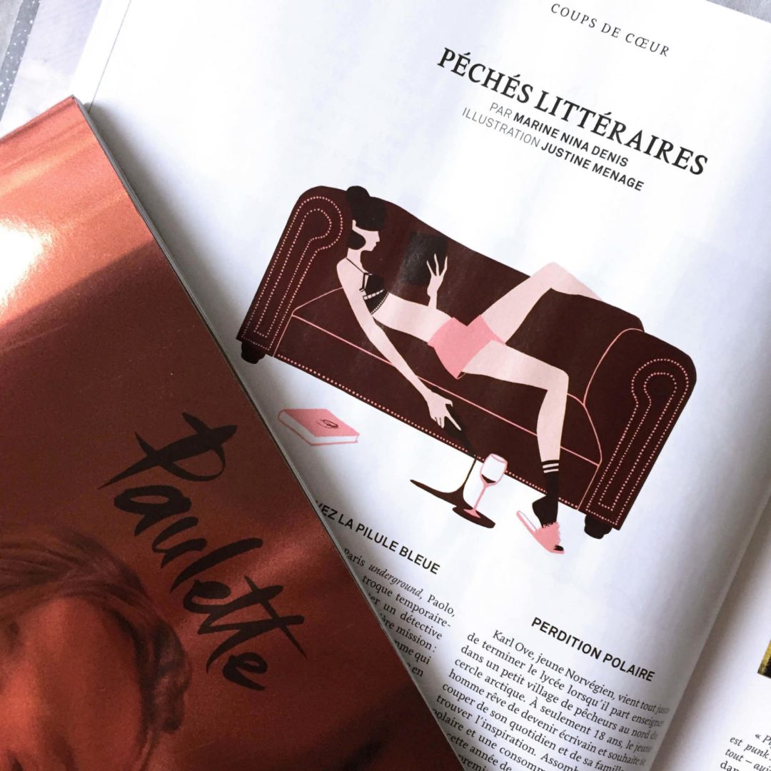 A plusieurs reprises, Justine signe des collaborations avec le magazine Paulette en illustrant tout d’abord les « fonds d’écran du mois » puis en illustrant la partie « Coup de cœur – Lecture – Péché Littéraire ».