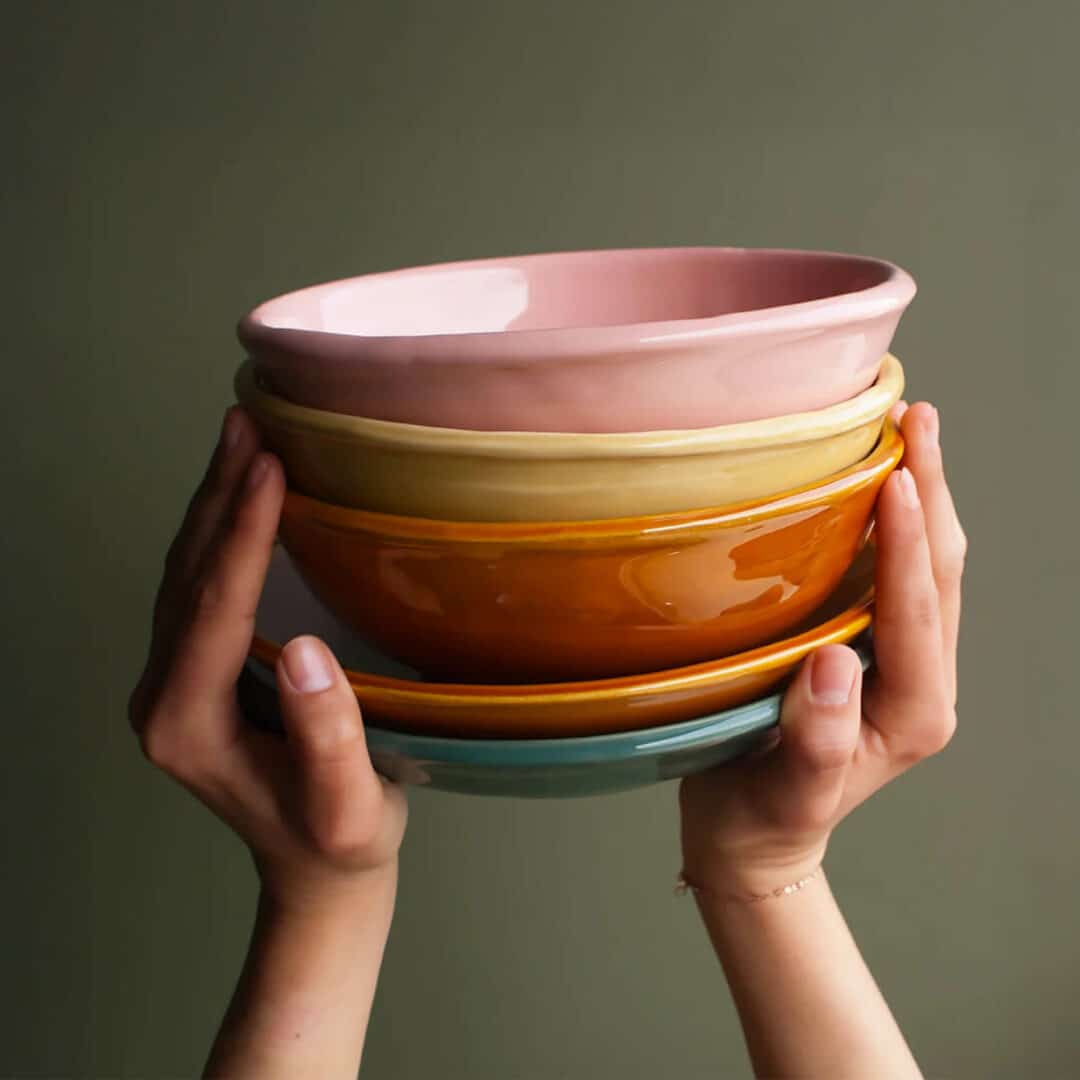 Point fort sur la matière épaisse à travailler dans des volumes épurés. La céramique lisse et brillante se mélangera avec le verre de couleur.