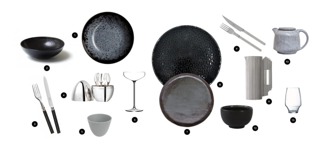 1- Jaune de Chrome / 2- Montgolfier / 3- Alain Saint-Joanis / 4- Christofle / 5- Dorothée Juilliard / 6- Lehmann / 7- Elsa Haas / 8- Maison Maleh / 9- Sabre / 10- Gaëlle Le Doledec / 11- Puiforcat / 12- Jars / 13- Chef&Sommelier
