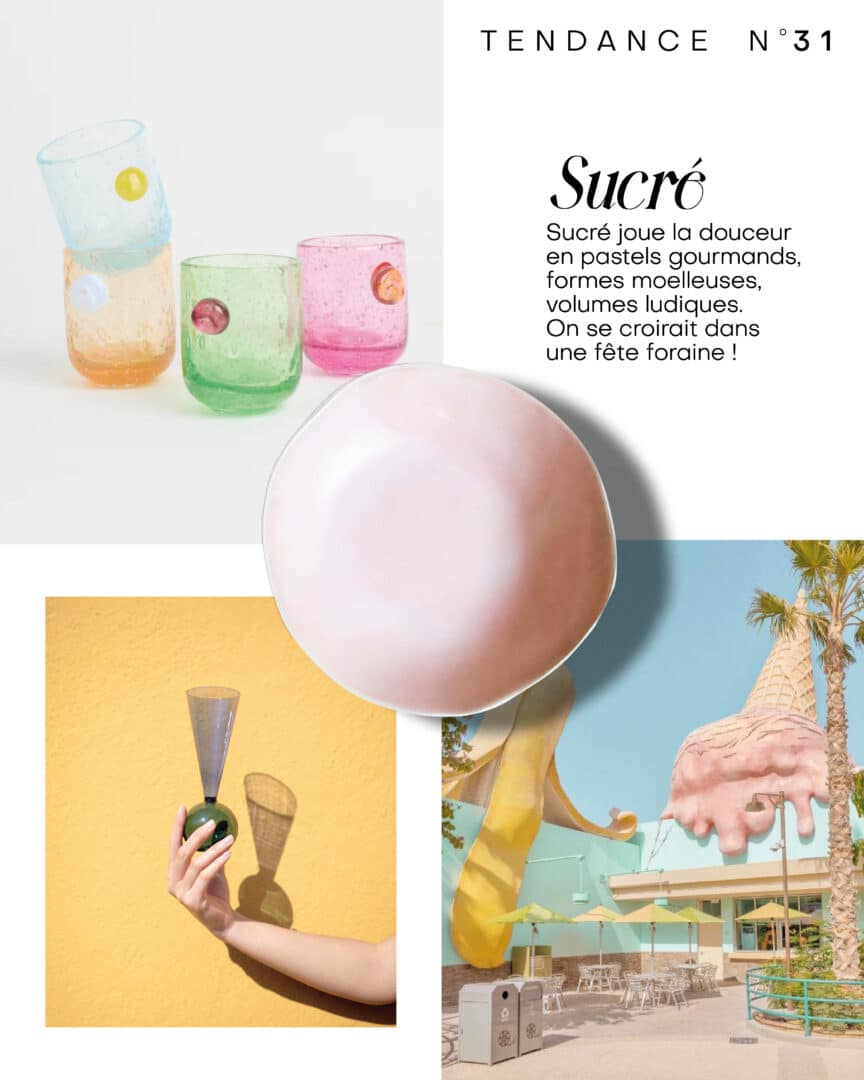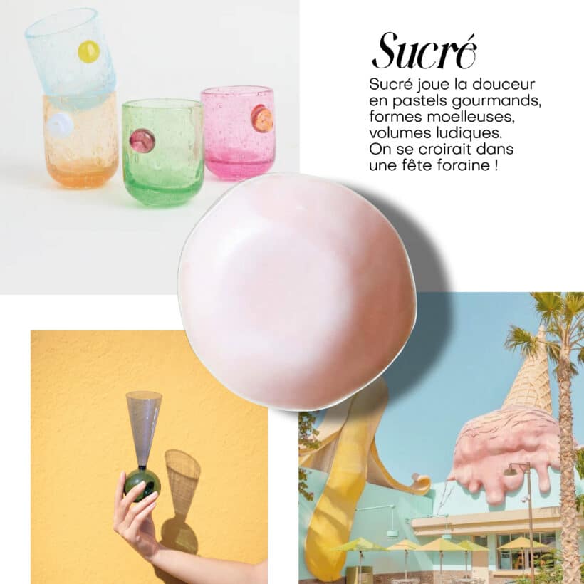 Des nuances de pastels gourmands, inspirées des sucreries et des pâtisseries qui ravivent l’oeil et les papilles.