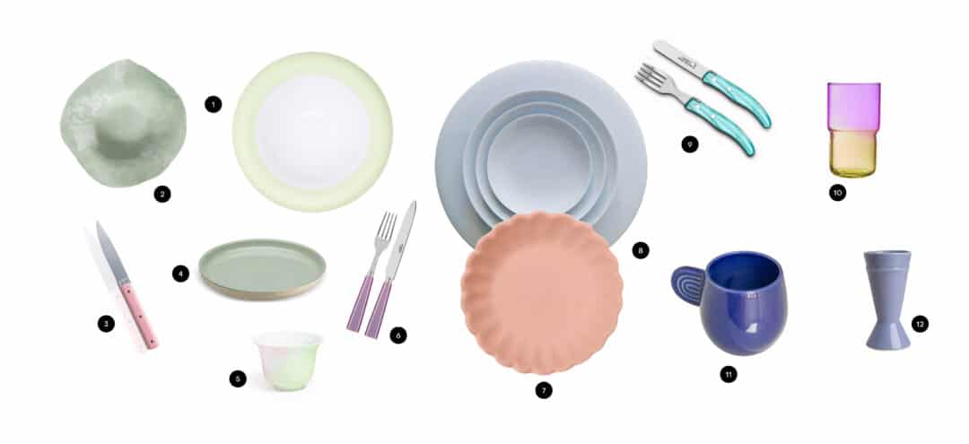 Pour les matières, la porcelaine fine et le verre valoriseront les couleurs opalescentes.