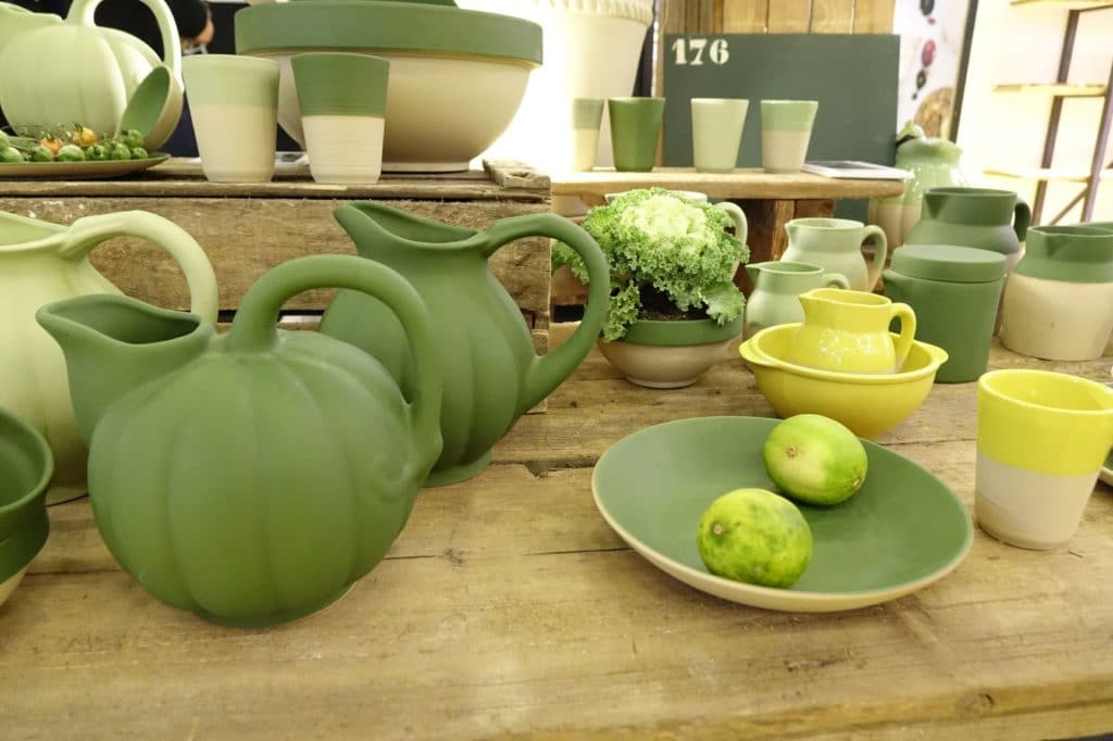 Présente sur le salon le jour de notre visite, Corinne Jourdain-Gros, la directrice de la Manufacture de Digoin, nous a présenté ces pichets en barbotine inspirés d’un univers végétal : « Nous avons choisi une couleur profonde, proche de la nature, et qui contraste avec la forme vintage du pichet. Notre souhait est d’être à la fois intemporel et contemporain. Et enfin, sur un plan pratique, le vert mat permet de ne pas laisser de traces de doigts. »